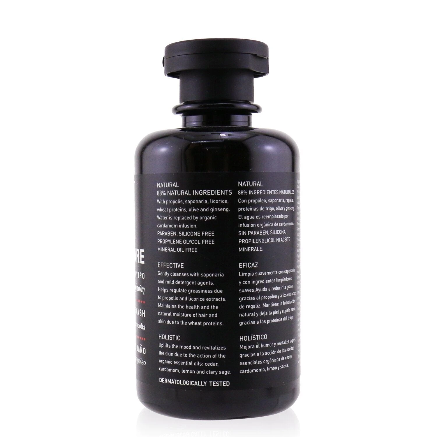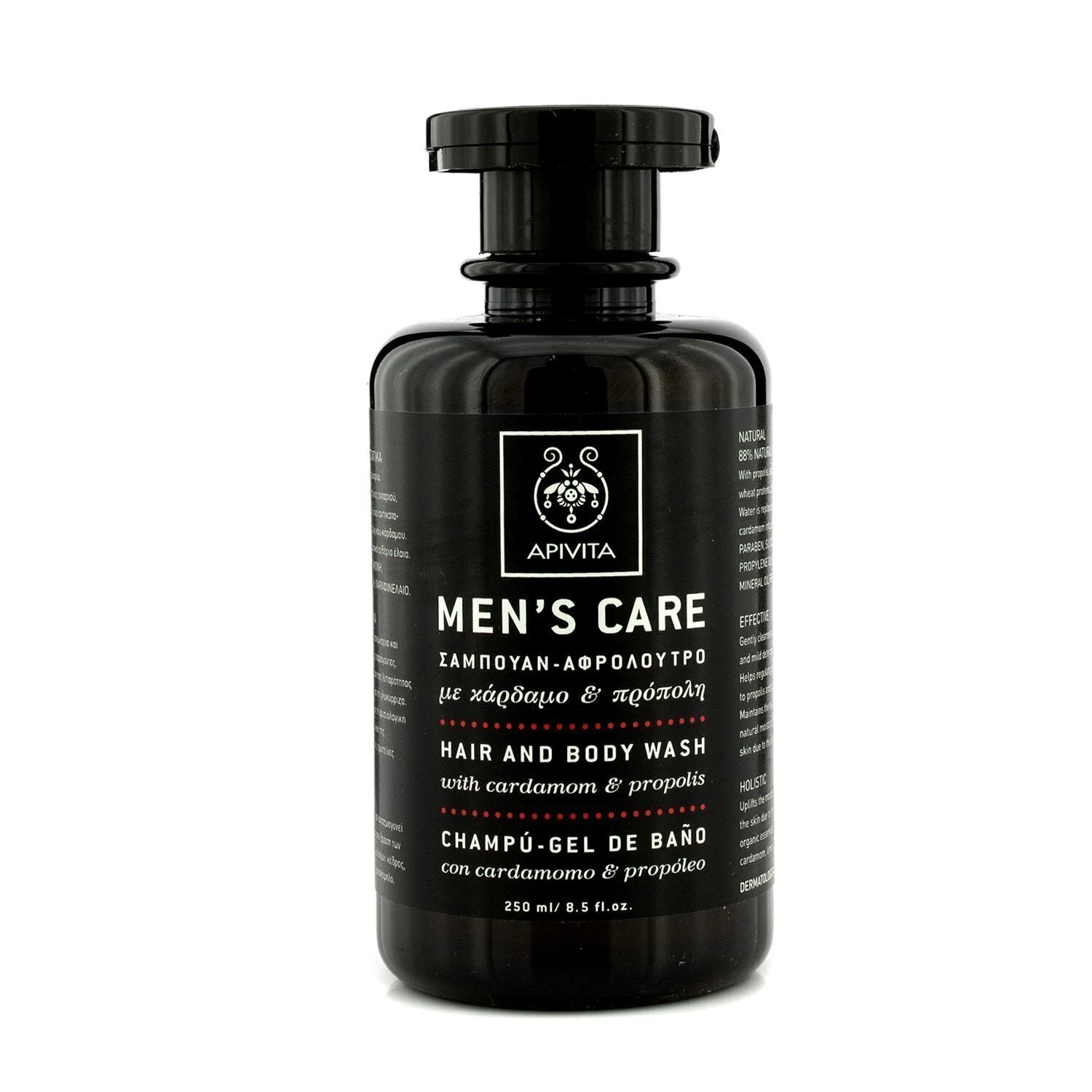 A natural hair & body wash for men Contains saponaria & mild detergent agents that gently cleanse hair & skin without irritating Blended with propolis & licorice extract to regulate oil Loaded with wheat proteins to maintain natural moisture of hair & skin Leaves body & hair soft, healthy looking Free of parabens, silicones, propylene glycol & mineral oil Dermatologist-tested