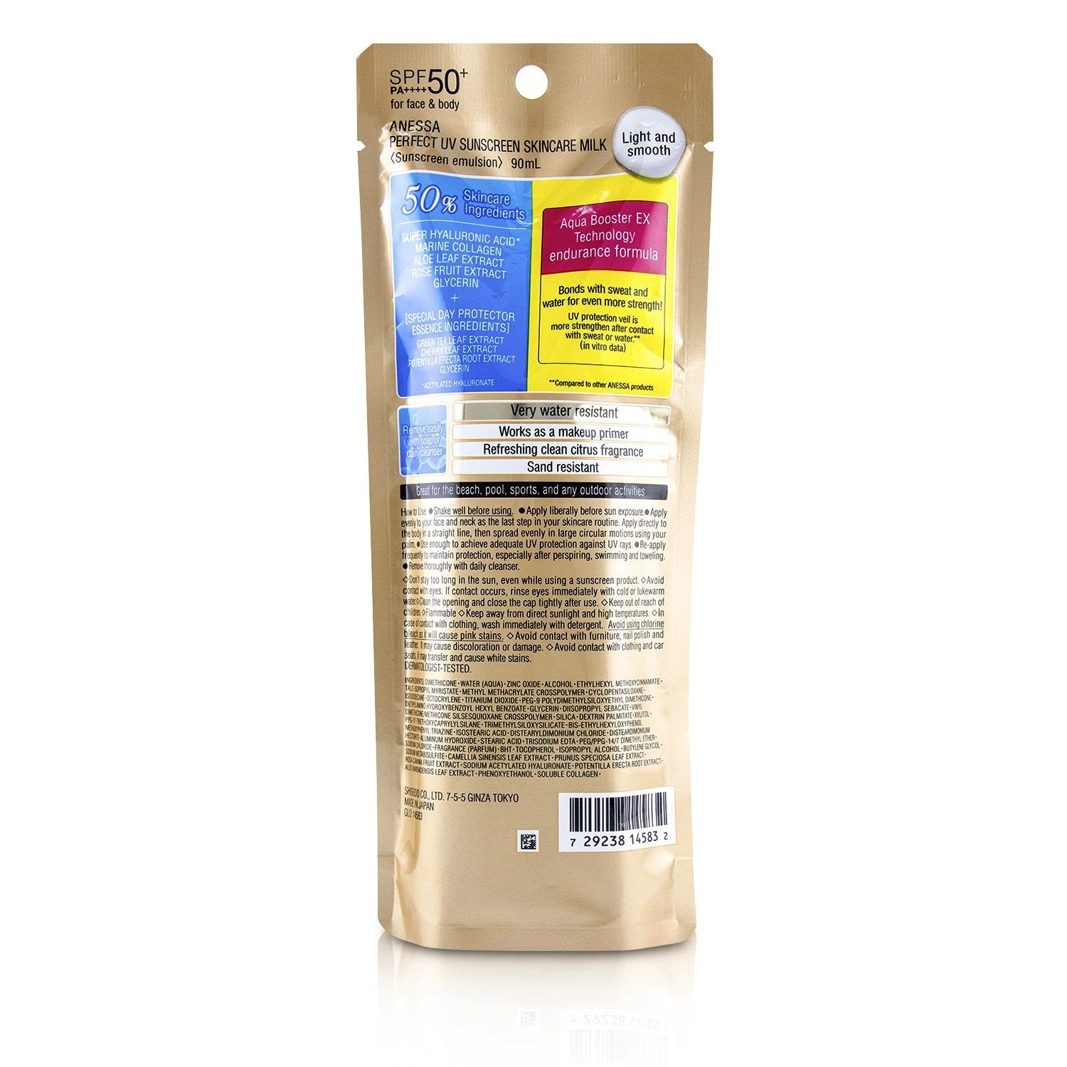 Shiseido Anessa Perfect UV Sunscreen Skincare Milk SPF50+ PA++++ 90ml/3oz